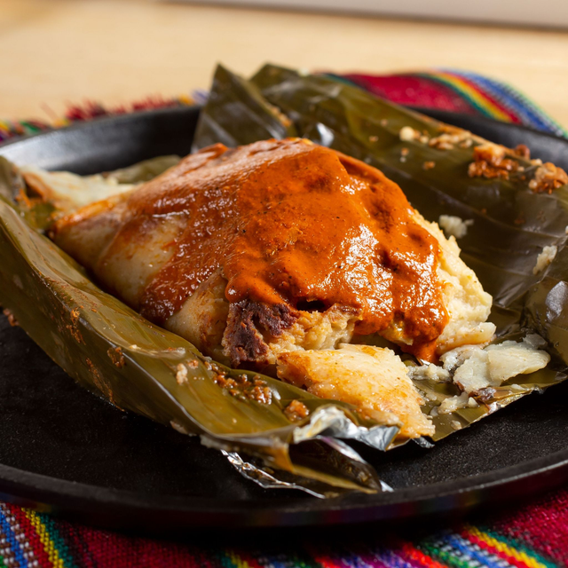 Enveloppé dans des feuilles de bananier puis cuit à la vapeur, ce tamal séduit par sa texture moelleuse et ses notes aromatiques riches, qui évoquent toute la générosité de la cuisine de Oaxaca.